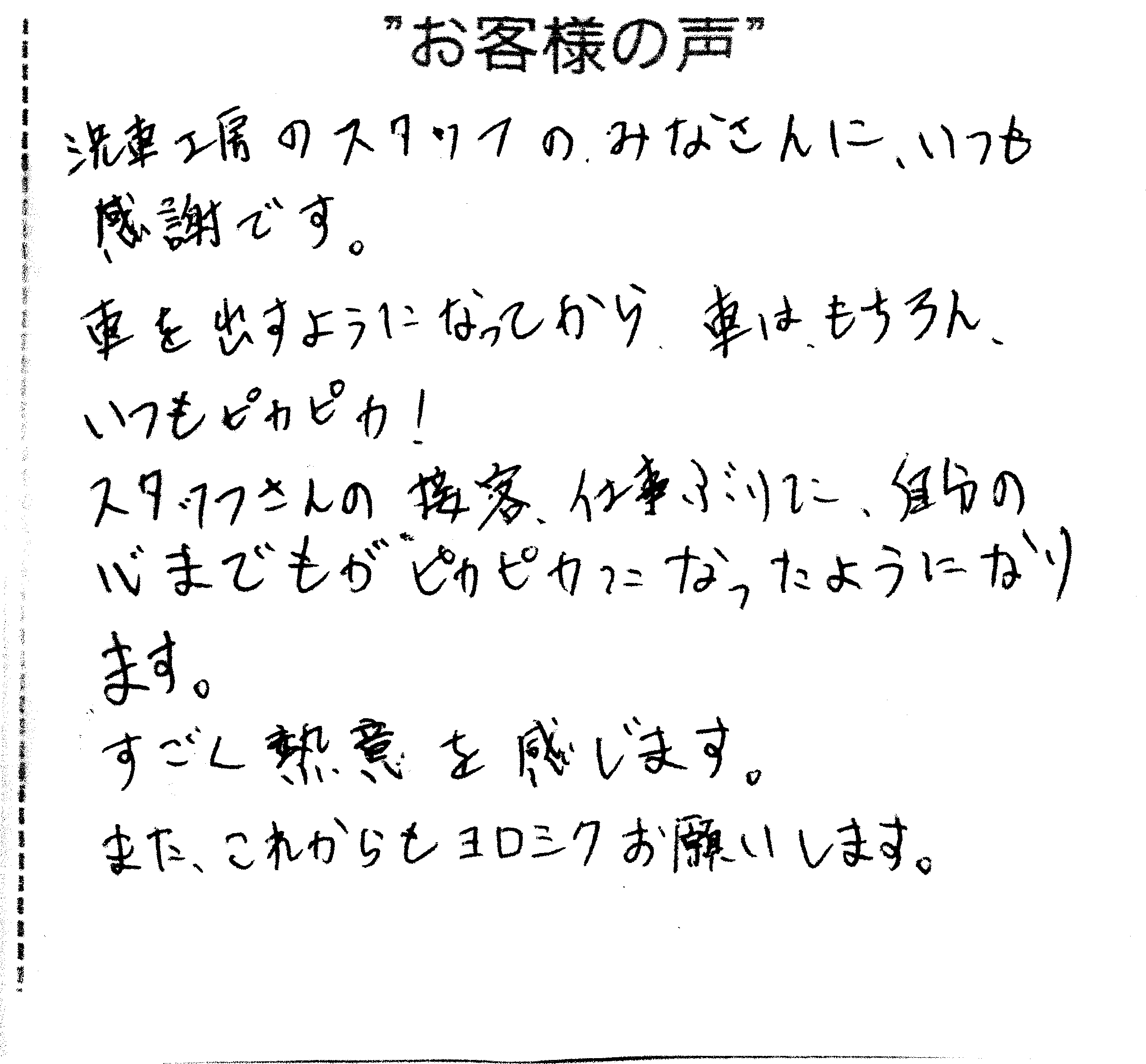 お客様 感想2 13 - カーコーティングと純水真心洗車の洗車工房