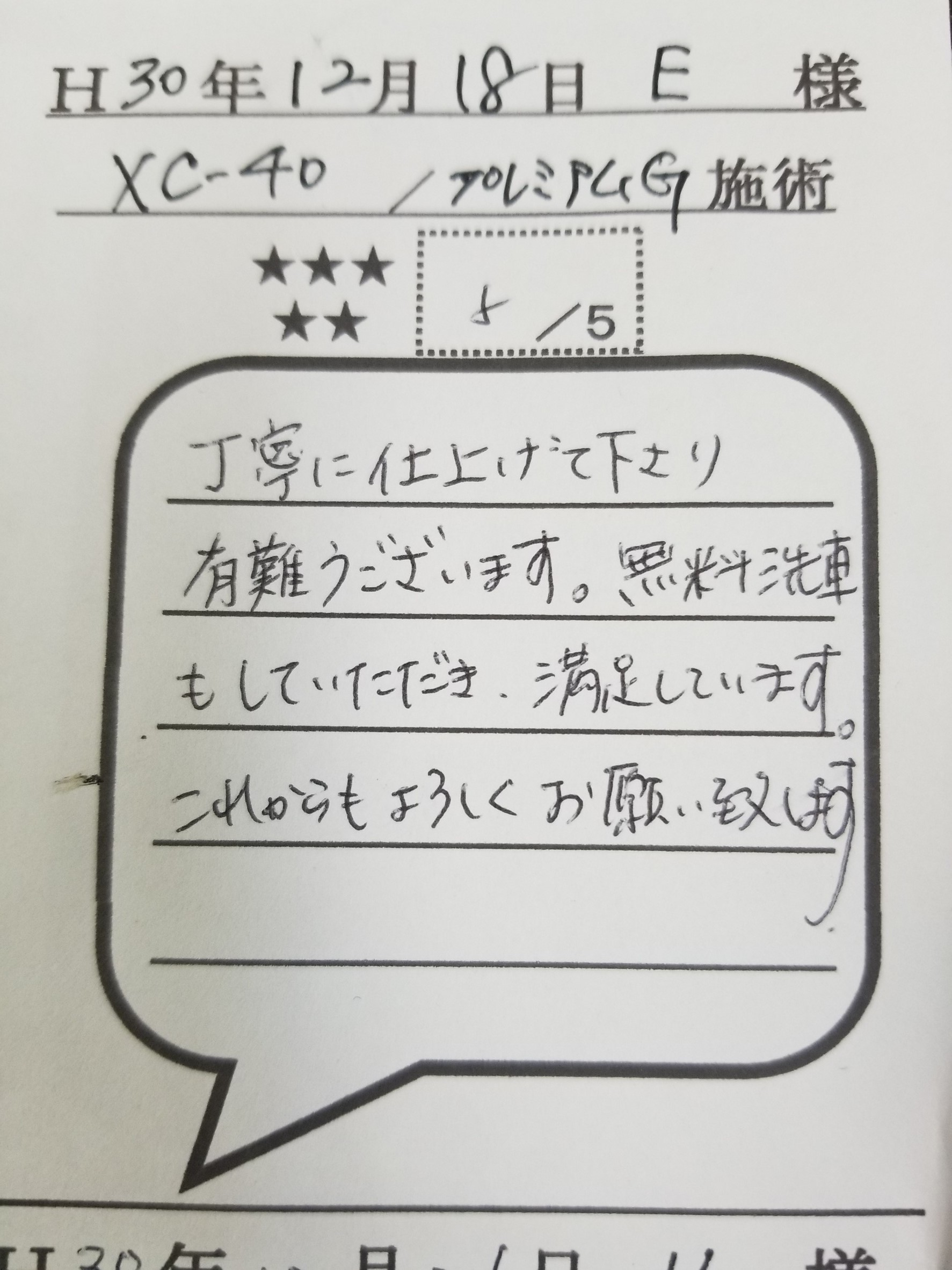 隼人店 被膜チェック お客様の声_190108_0061 - カーコーティングと純水真心洗車の洗車工房