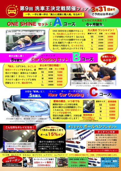 『第9回 洗車王決定戦開催記念フェア』3月のおすすめ