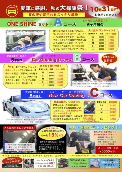 『愛車に感謝、秋の大掃除祭!』10月のフェア