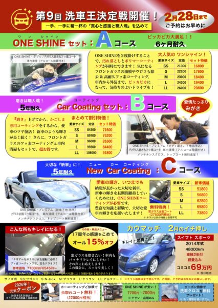 『第9回 洗車王決定戦開催記念フェア』2月のおすすめ