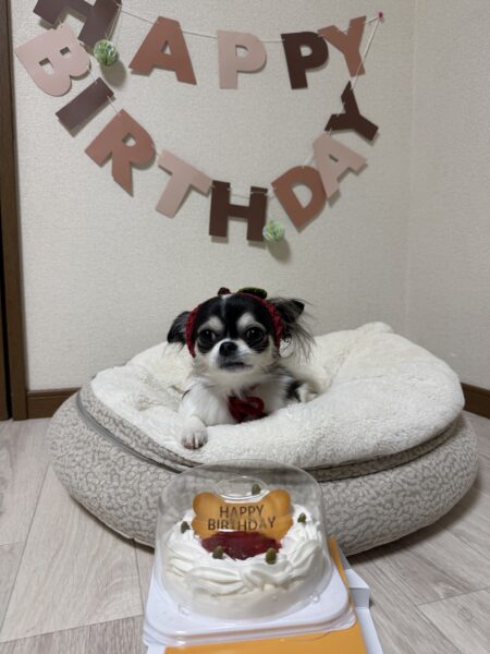 最後は1歳を迎えた愛犬の写真を見せて終わります!