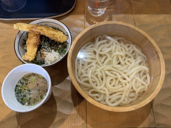 麺がもっちりしていて、鰤胡麻出汁が最高にマッチしているのと、とり天丼も最高に美味しかったです!!
