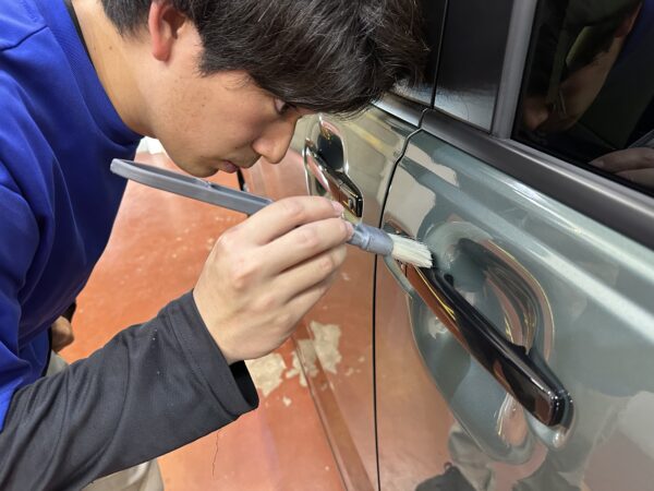 下地洗浄後、純水で流し水滴をキレイに拭きあげコーティング剤を丁寧に塗ります。