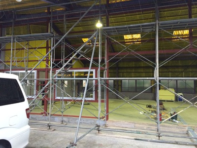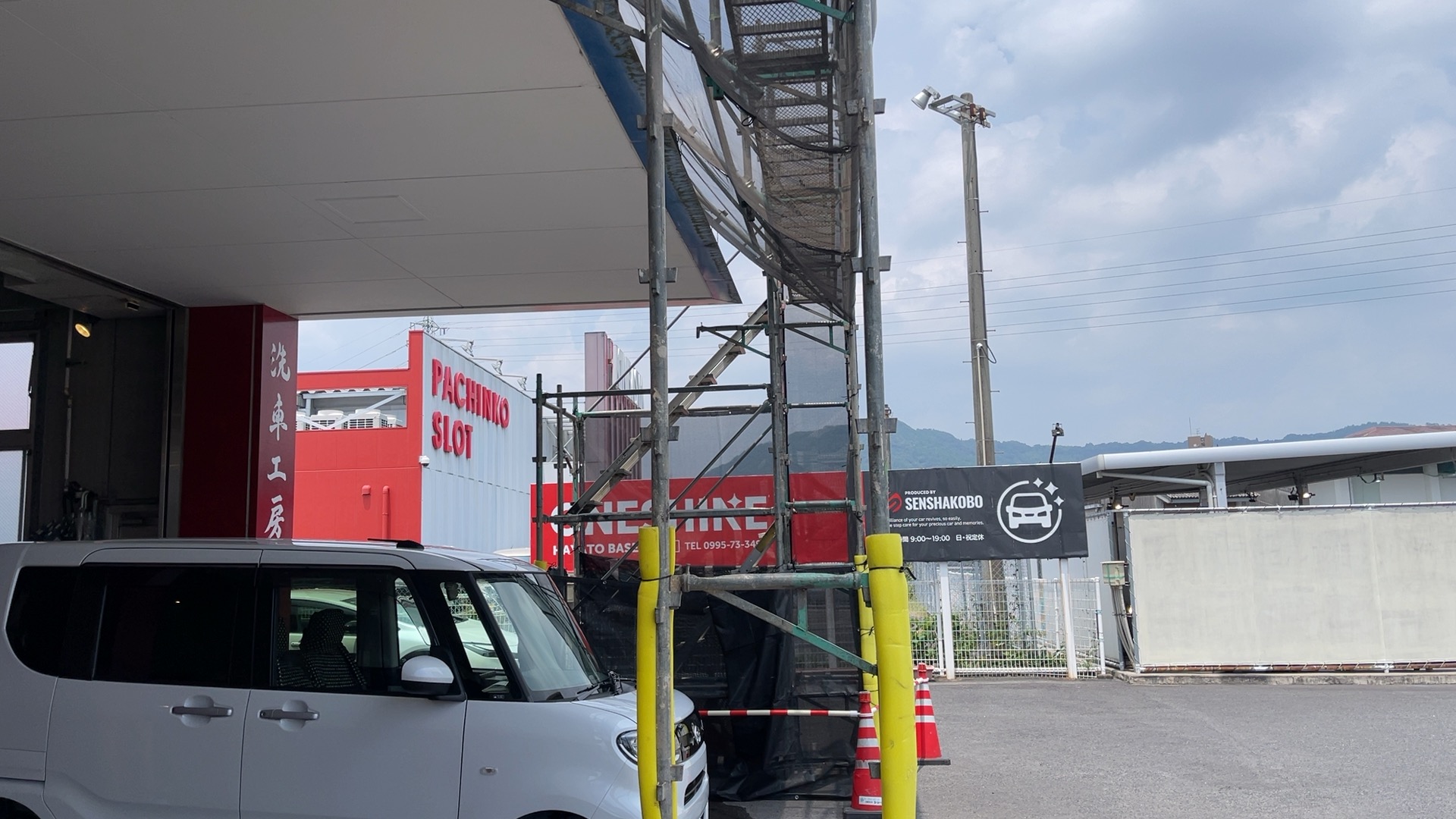 足場はありますが、夜間作業をされていますので、当社の施術には影響ありませんから、ご安心ください。
