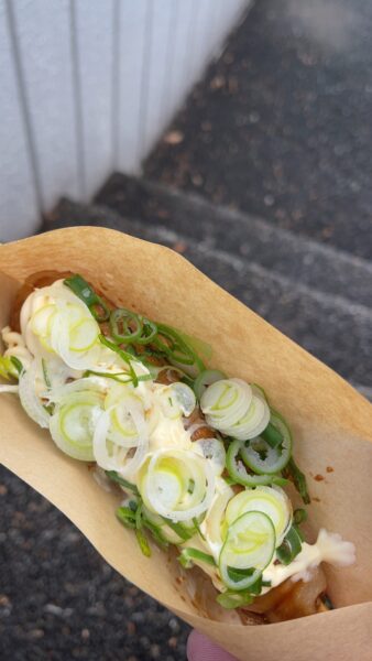 これはお昼ごはんの、肉巻きおにぎりネギマヨ。