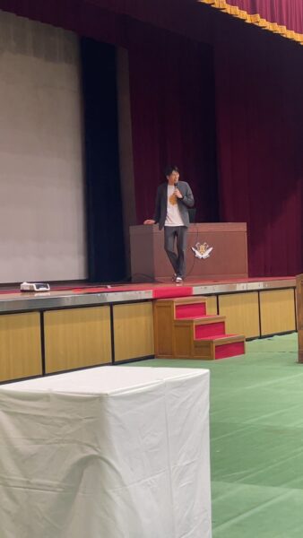 今年の入会式記念講演は、吉本興業所属、隼人工業の後輩