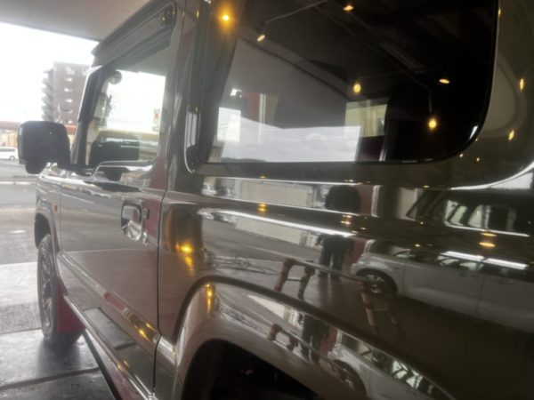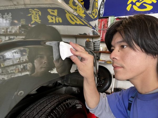 洗車工房オリジナルのワンシャインコーティングをボディー全体にムラなく塗り込んで火山灰や汚れに負けないように包み込んでいきます。