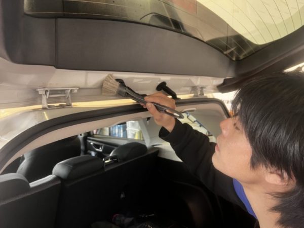新車でもドア周りからボディーや細かなところ水垢やシミなどが付いていることがありますので溶剤を使って落としていきます。