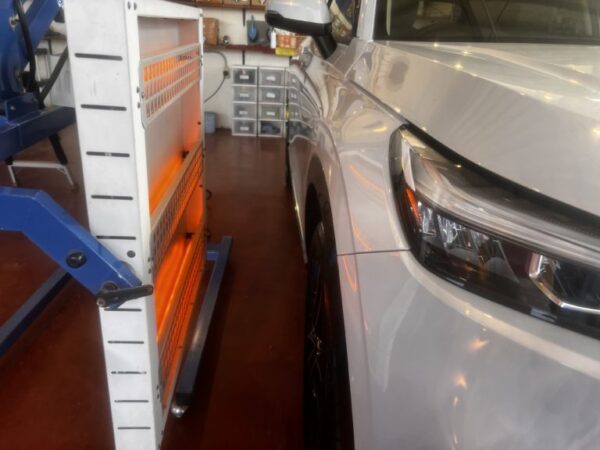 コーティングの施術が終わりましたら赤外線ヒーターをボディーに当てコーティング剤を定着させていきます。