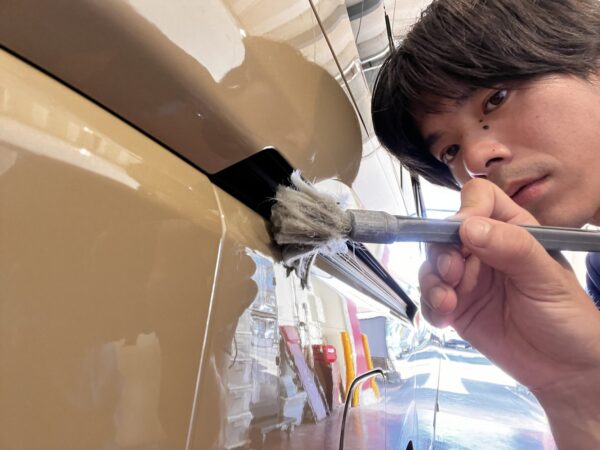 火山灰や汚れなどに負けないワンシャインコーティングを手塗りでムラなくボディーに塗り込んでいきます。