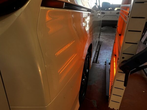 赤外線ヒーターを使ってコーティング剤をしっかりとボディーに定着させていきます。
