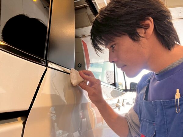 1パネルずつムラなくボディーにワンシャインコーティングを綺麗に塗り込んでいきます。