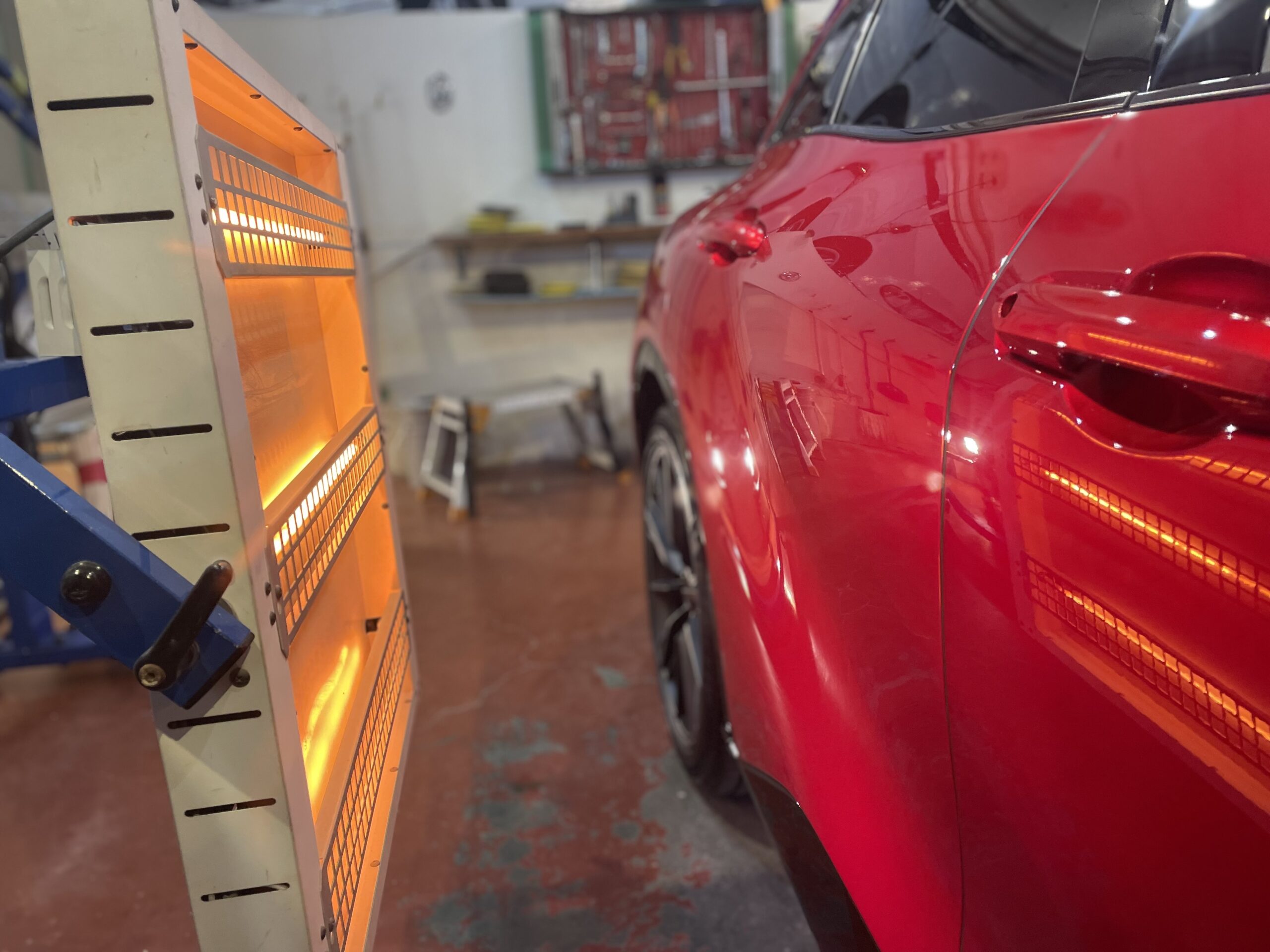 コーティング後はもちろん赤外線ヒーターでしっかり焼き付けていきます。