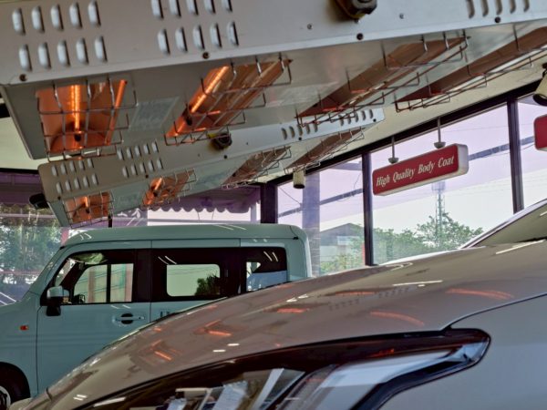 全体に塗り終えたら専用の中波赤外線ヒーターでガラス被膜を焼き付けていきます(^^)