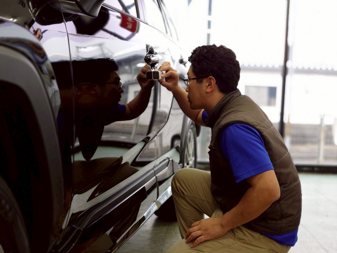 ボディの水滴を拭き上げたら、コーティングを塗りこんでいきます!