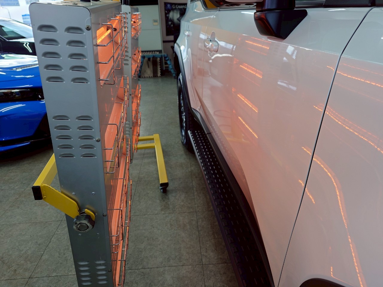 塗り込み終わったら専用の中波赤外線ヒーターでガラス被膜を焼き付けていきます!