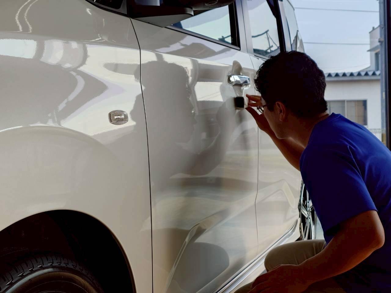 ボディの拭き上げが終わったらコーティングを塗りこんでいきます!