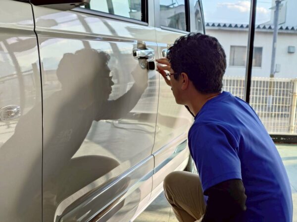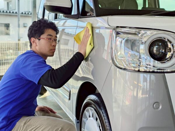ボディ全体にコーティングを塗りこんだら、ワンシャインでボディを拭き上げていきます!