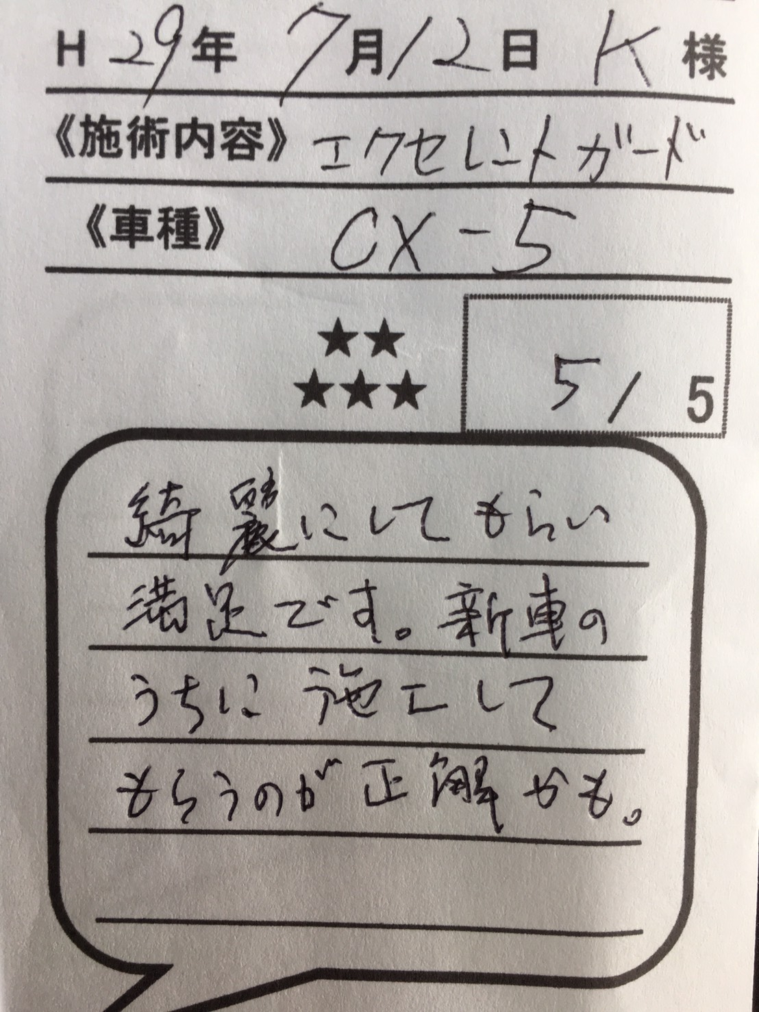 ← 姶良店★CXー5様 エクセレント・ガード