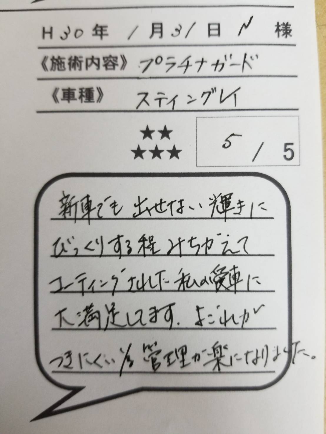 姶良店★スティングレィ様 プラチナ・ガード